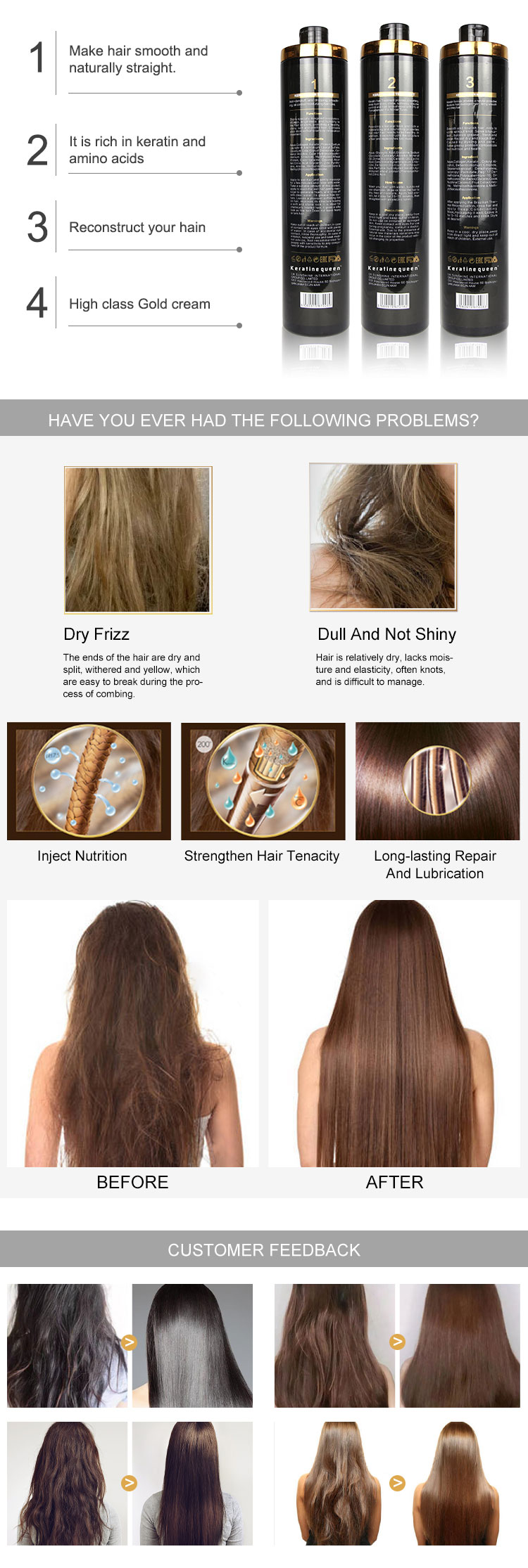Professional Hydrolyzed Brazilian Keratin Hair Straightening Cream Protein Pure Brazilian Keratin Hair Treatment